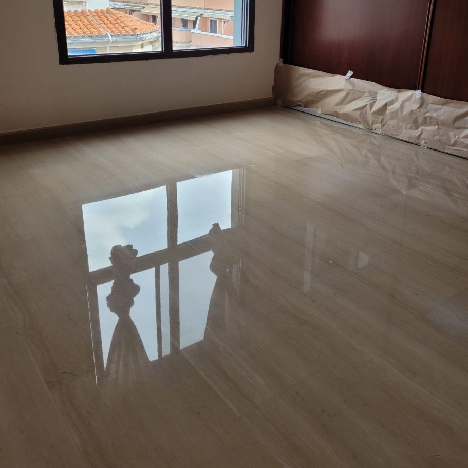 Mediante el proceso de pulido con abrasivos, eliminamos la capa superficial desgastada, manchada y dañada para recuperar el aspecto original del suelo.